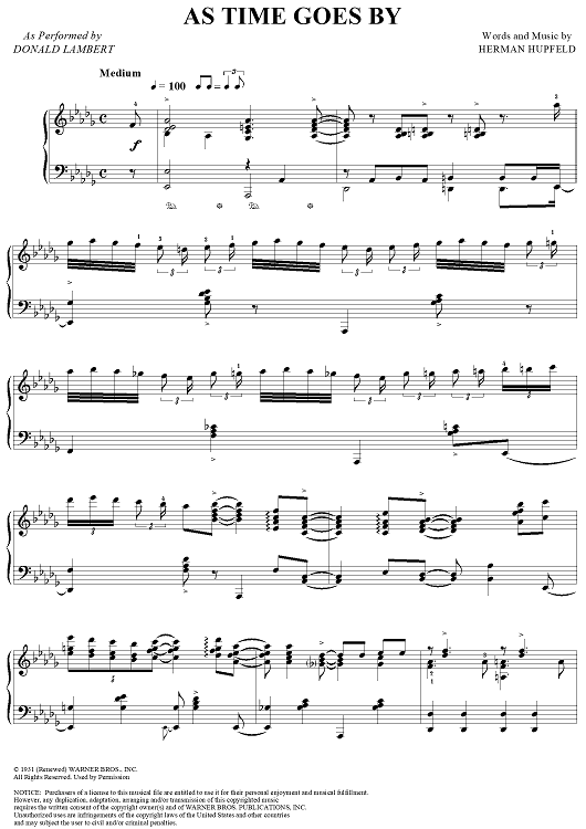 Digital Sheet Music for As Time Goes By by Herman Hupfeld, Donald Lambert scored for Piano Solo; id:124342
