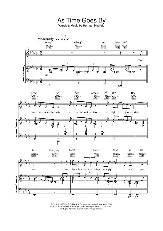 Digital Sheet Music for As Time Goes By by Herman Hupfeld, M People scored for Piano/Vocal/Chords; id:378745