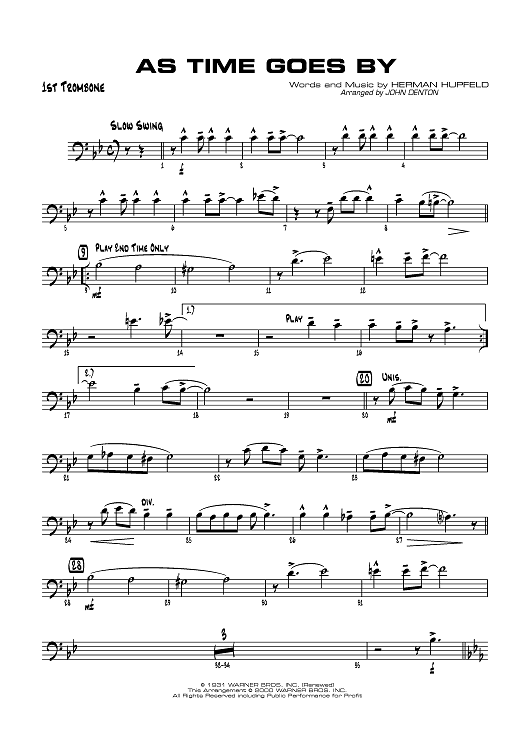 "As Time Goes By - Trombone 1" Sheet Music by Herman Hupfeld