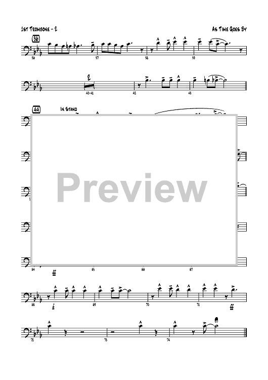 Digital Sheet Music for As Time Goes By - Trombone 1 by Herman Hupfeld, John Denton scored for Jazz Ensemble; id:359612