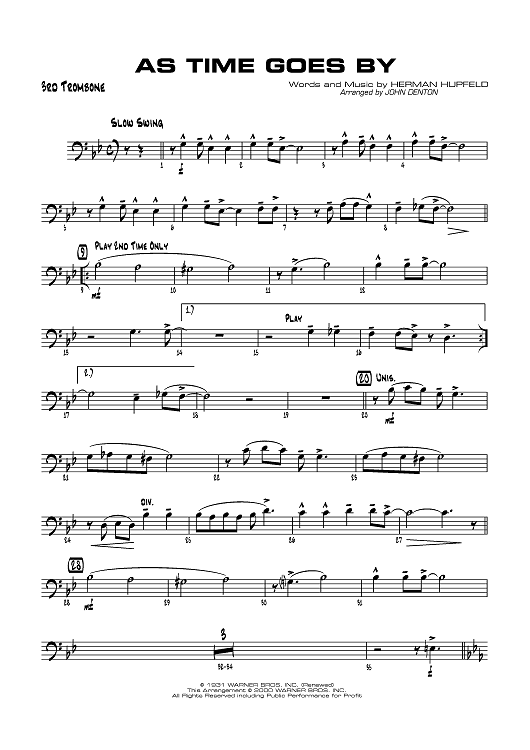 "As Time Goes By - Trombone 3" Sheet Music by Herman Hupfeld