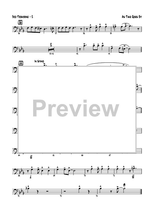 Digital Sheet Music for As Time Goes By - Trombone 3 by Herman Hupfeld, John Denton scored for Jazz Ensemble; id:359614