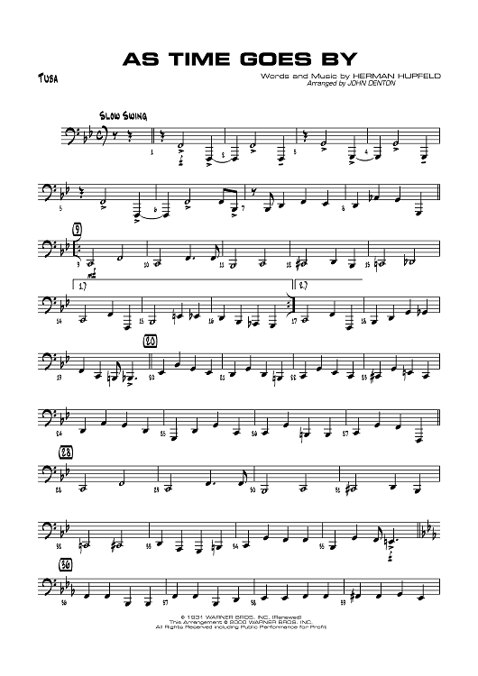 "As Time Goes By - Tuba" Sheet Music by Herman Hupfeld