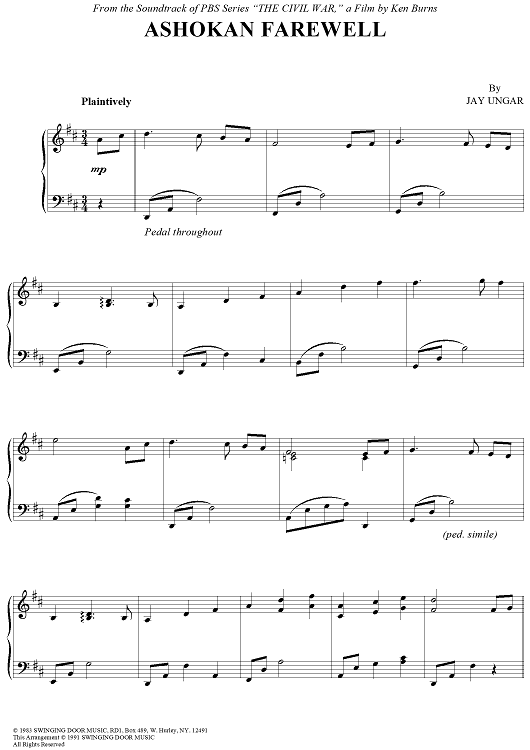 Digital Sheet Music for Ashokan Farewell by Jay Ungar scored for Piano Solo; id:262428