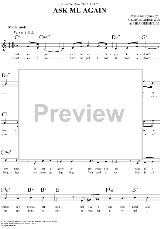 Digital Sheet Music for Ask Me Again by , George Gershwin, Ira Gershwin scored for Lead Sheet; id:283390