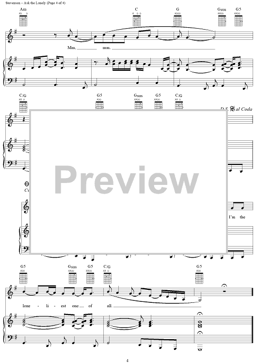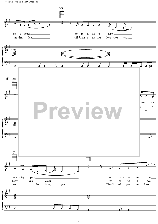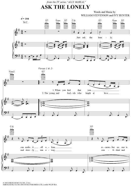 Digital Sheet Music for Ask The Lonely by Four Tops, Vonda Shepard, William Stevenson, Ivy Jo Hunter scored for Piano/Vocal/Chords; id:220759