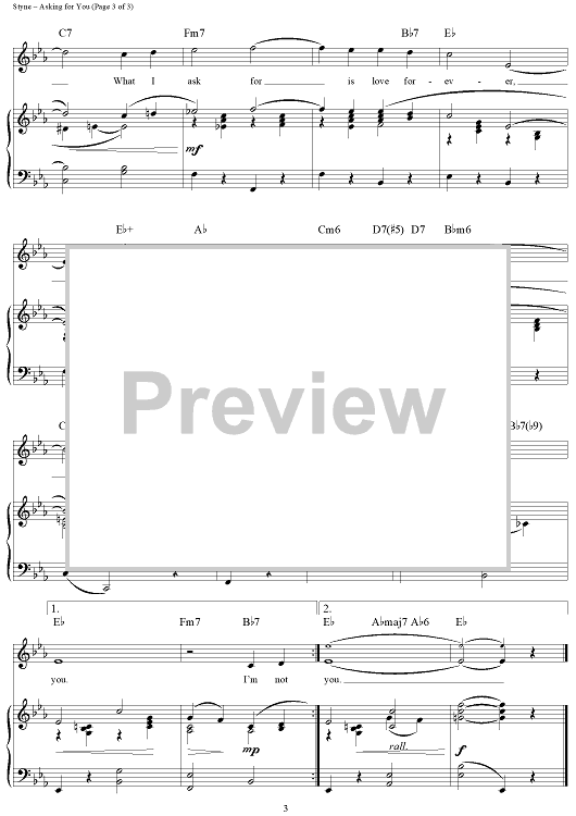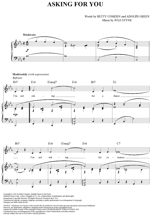 Digital Sheet Music for Asking For You by Jule Styne, Betty Comden, Adolph Green scored for Piano/Vocal/Chords; id:315089