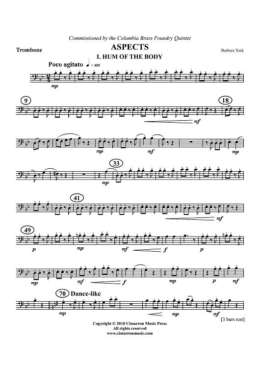 "Aspects for Brass Quintet - Trombone" Sheet Music by Barbara York