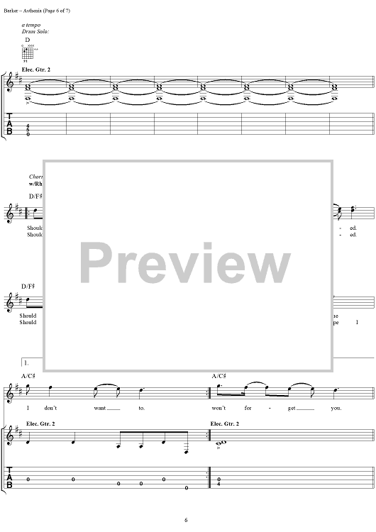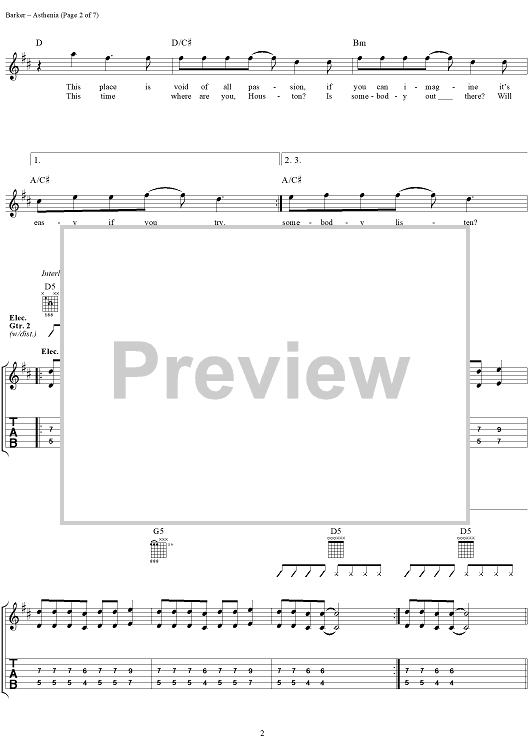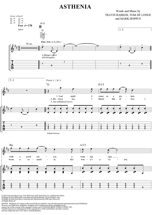 Digital Sheet Music for Asthenia by Travis Barker, Mark Hoppus, blink-182, Tom DeLonge scored for Guitar Tab/Vocal; id:305316