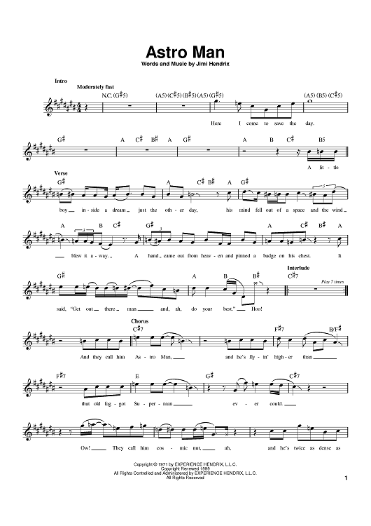"Astro Man" Sheet Music by Jimi Hendrix