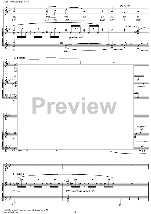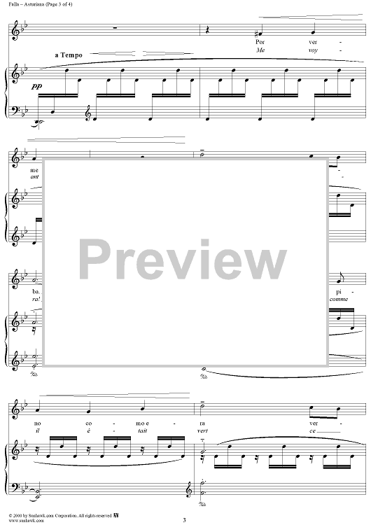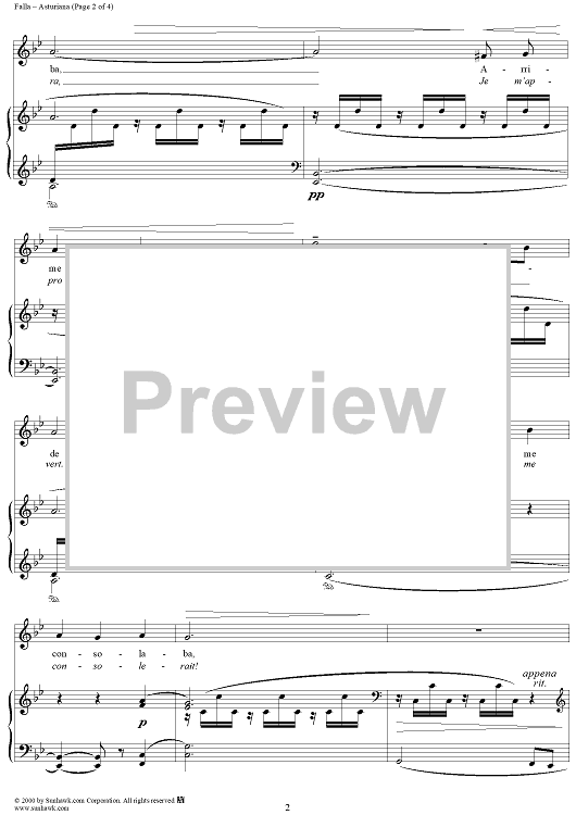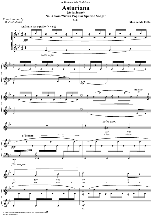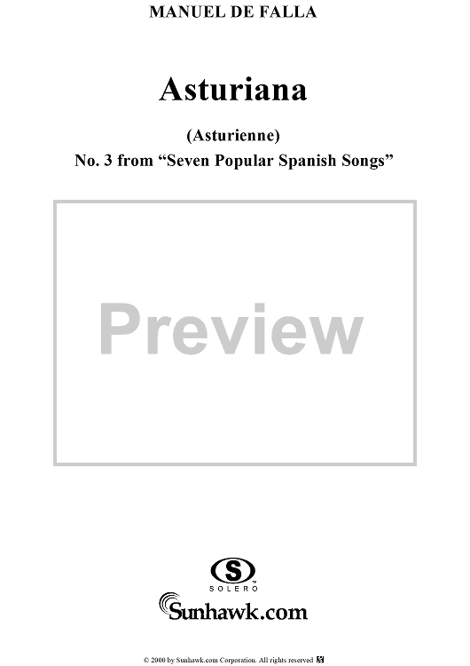 Digital Sheet Music for Asturiana by Manuel De Falla scored for Soprano/Piano; id:200111