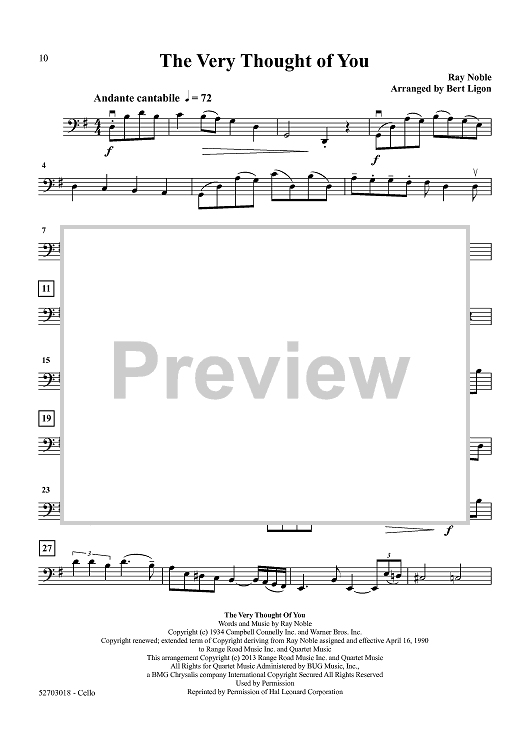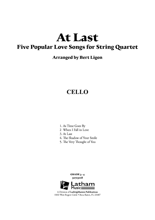 Digital Sheet Music for At Last - Five Popular Love Songs - Cello by Various, Bert Ligon scored for String Quartet; id:458206
