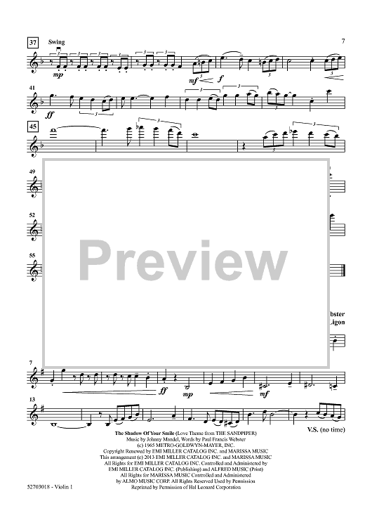"At Last - Five Popular Love Songs - Violin 1" Sheet Music by Various