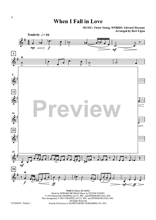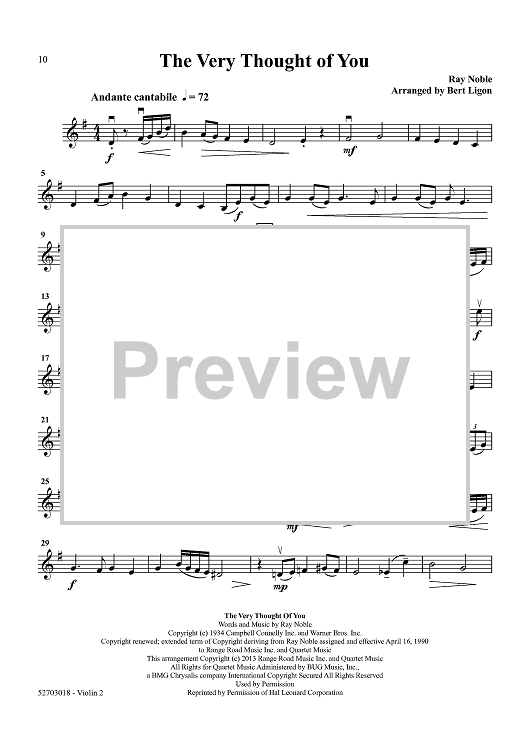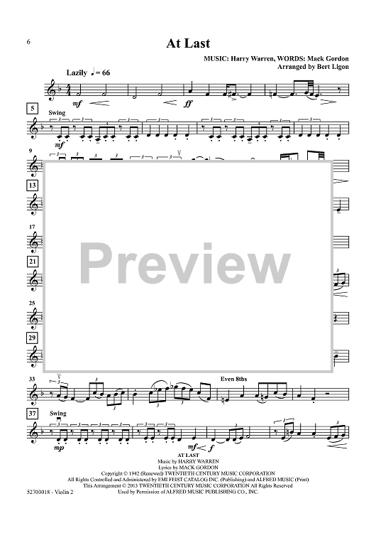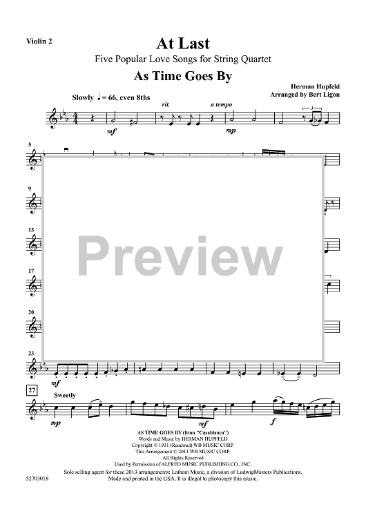 Digital Sheet Music for At Last - Five Popular Love Songs - Violin 2 by Various, Bert Ligon scored for String Quartet; id:458204