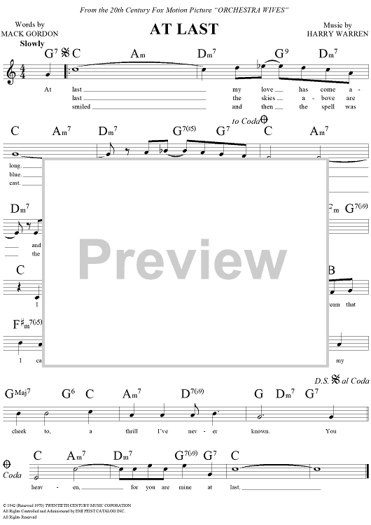 Digital Sheet Music for At Last by Harry Warren, Glenn Miller, Mack Gordon scored for Lead Sheet; id:110141