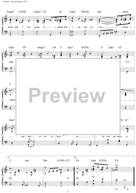 Digital Sheet Music for At Last by Harry Warren, Mack Gordon, Etta James, Ray Anthony and His Orchestra scored for Piano/Vocal/Chords; id:297203