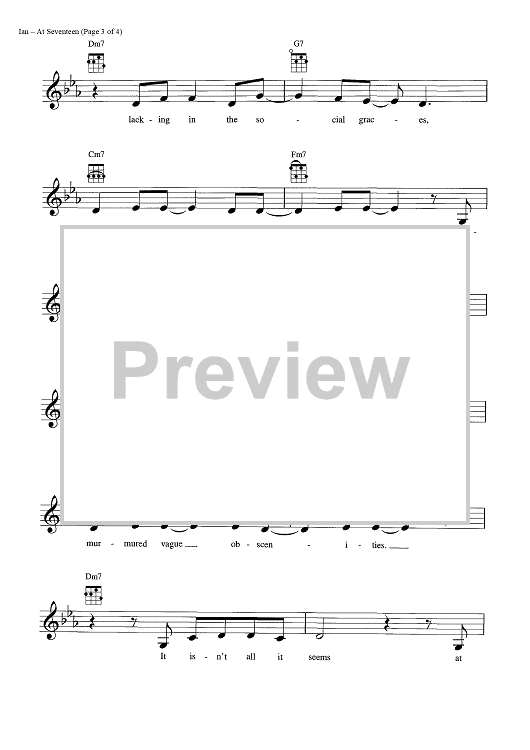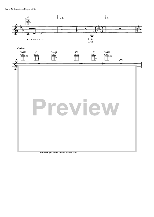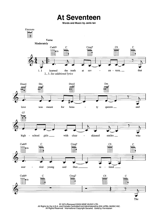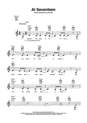 Digital Sheet Music for At Seventeen by Janis Ian scored for Ukulele/Vocal; id:450401