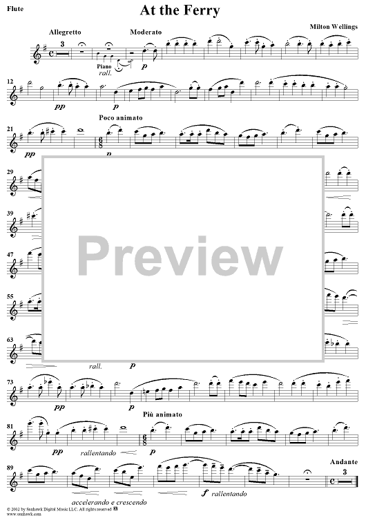 Digital Sheet Music for At the Ferry - Flute by Milton Wellings scored for Flute/Piano; id:264057