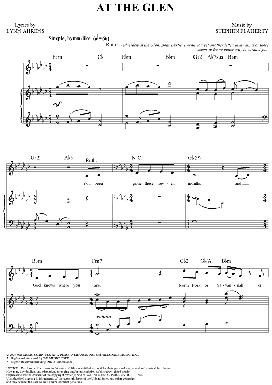 Digital Sheet Music for At the Glen by Stephen Flaherty, Lynn Ahrens scored for Piano/Vocal/Chords; id:314690