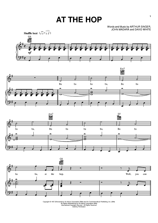 Digital Sheet Music for At The Hop by John Madara, Danny & the Juniors, Arthur Singer, David White scored for Piano/Vocal/Chords; id:368416