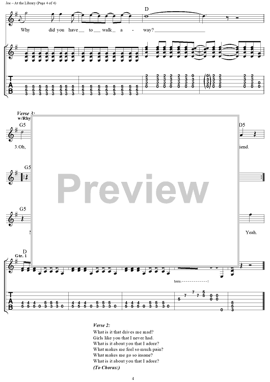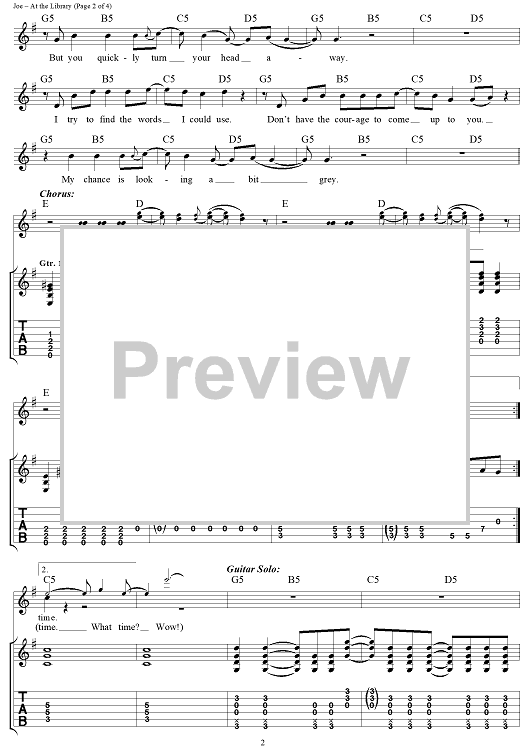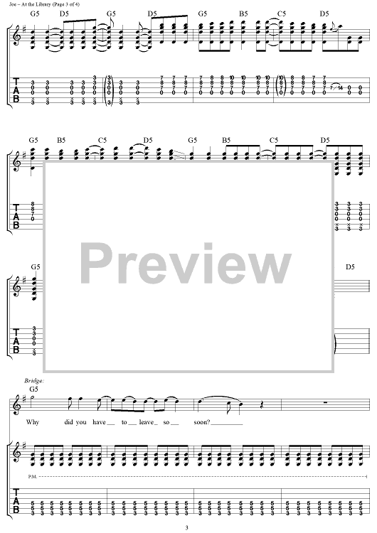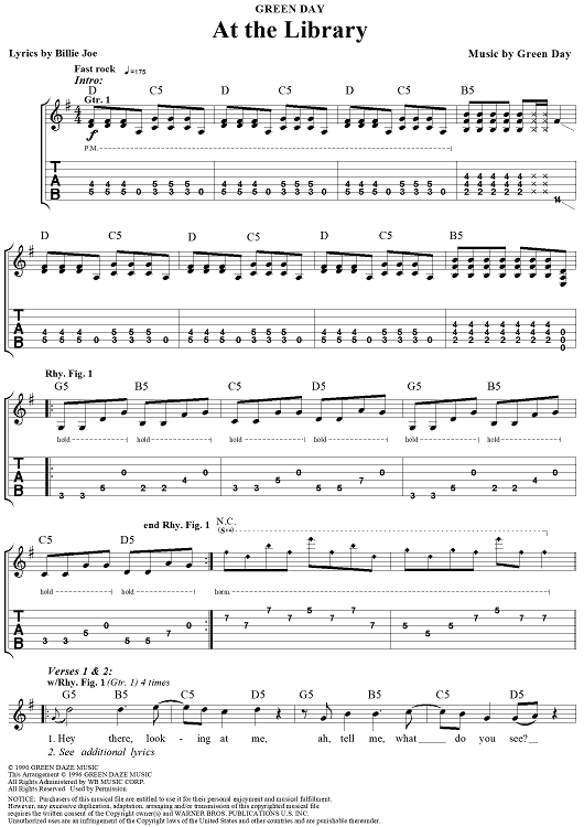 Digital Sheet Music for At the Library by Billie Joe Armstrong, Green Day scored for Guitar Tab/Vocal; id:109990