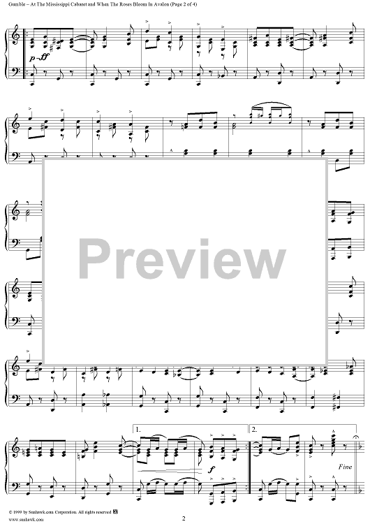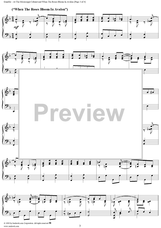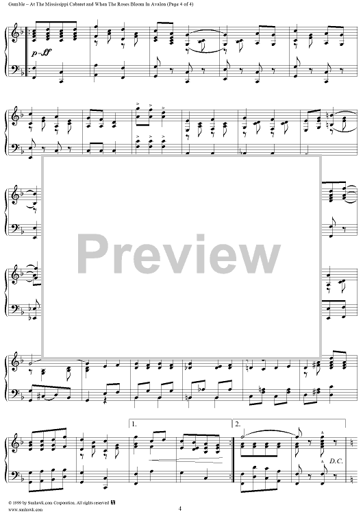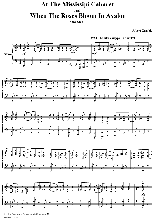 Digital Sheet Music for At the Mississippi Cabaret/ When the Roses Bloom in Avalon Medley by Albert Gumble scored for Piano/Vocal; id:267767
