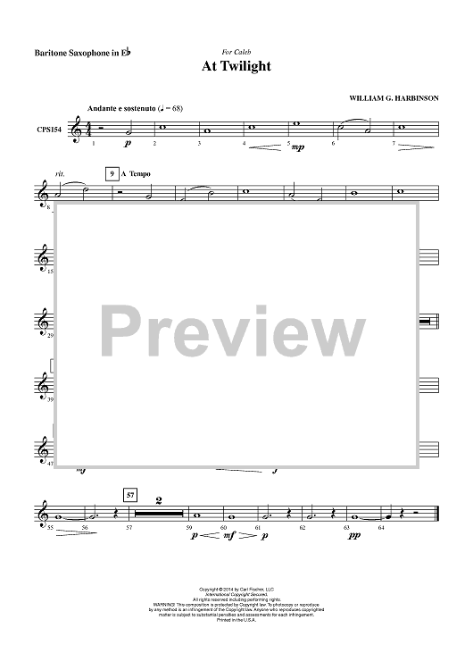 "At Twilight - Baritone Sax" Sheet Music by William G. Harbinson