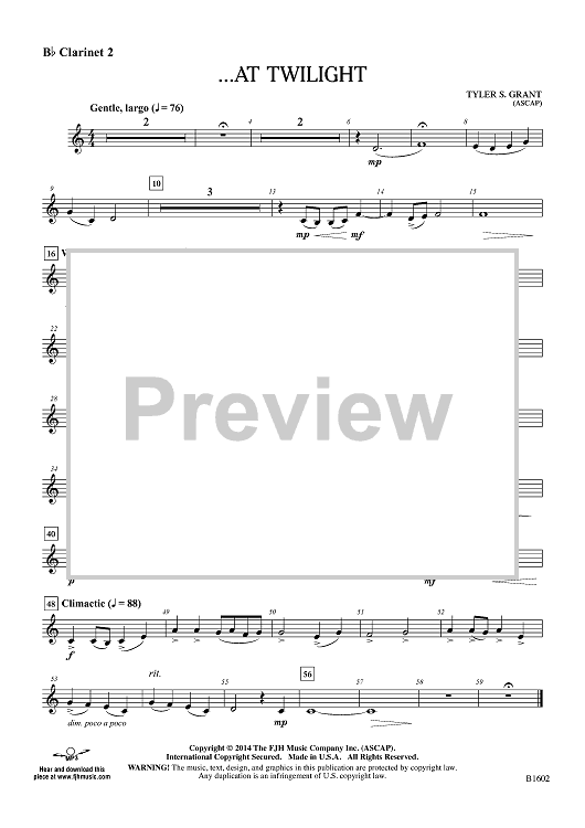 "At Twilight - Bb Clarinet 2" Sheet Music by Tyler S. Grant