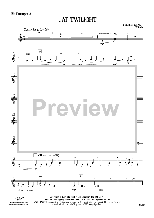 "At Twilight - Bb Trumpet 2" Sheet Music by Tyler S. Grant