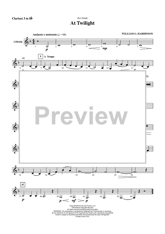 "At Twilight - Clarinet 3 in Bb" Sheet Music by William G. Harbinson