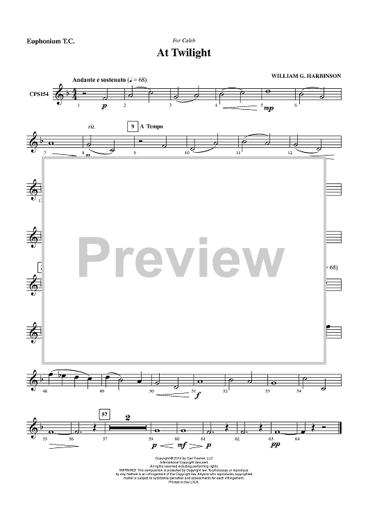 Digital Sheet Music for At Twilight - Euphonium TC in Bb by William G. Harbinson scored for Concert Band; id:451052