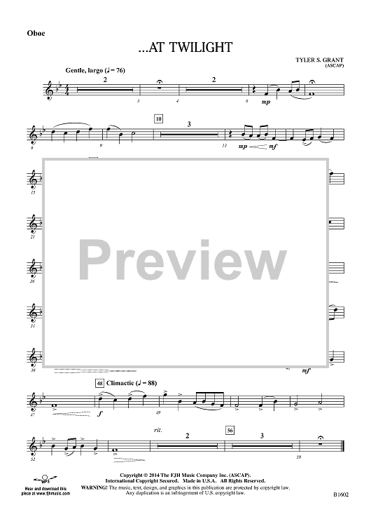 "At Twilight - Oboe" Sheet Music by Tyler S. Grant