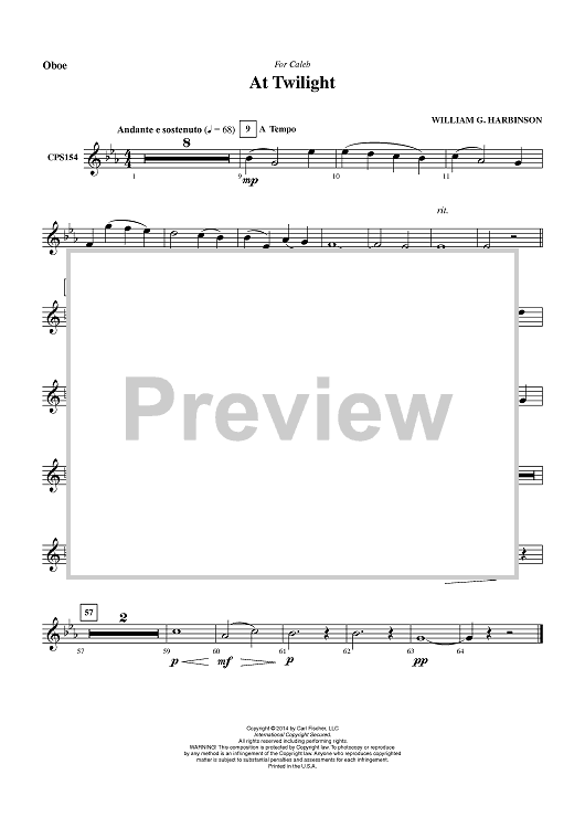 "At Twilight - Oboe" Sheet Music by William G. Harbinson