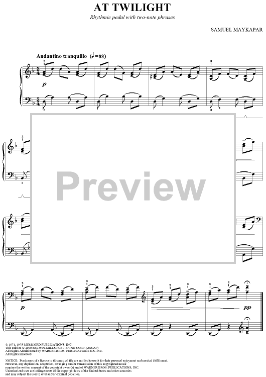 Digital Sheet Music for At Twilight by Samuel Maykapar scored for Piano Solo; id:295859