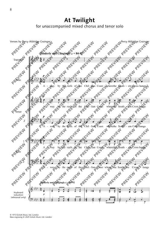 Digital Sheet Music for At Twilight by George Percy Aldridge Grainger scored for Tenor Solo • Mixed Choir (ssaattbb) A Cappella; id:510682
