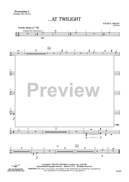 Digital Sheet Music for At Twilight - Percussion 1 by Tyler S. Grant scored for Concert Band; id:447647