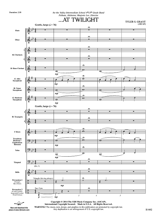 Digital Sheet Music for At Twilight - Score by Tyler S. Grant scored for Concert Band; id:447627