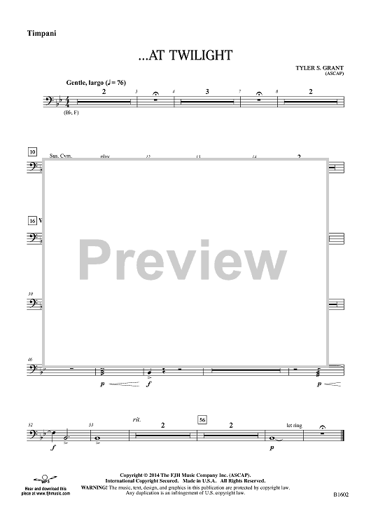 "At Twilight - Timpani" Sheet Music by Tyler S. Grant