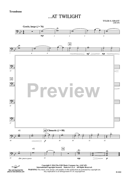 Digital Sheet Music for At Twilight - Trombone by Tyler S. Grant scored for Concert Band; id:447641