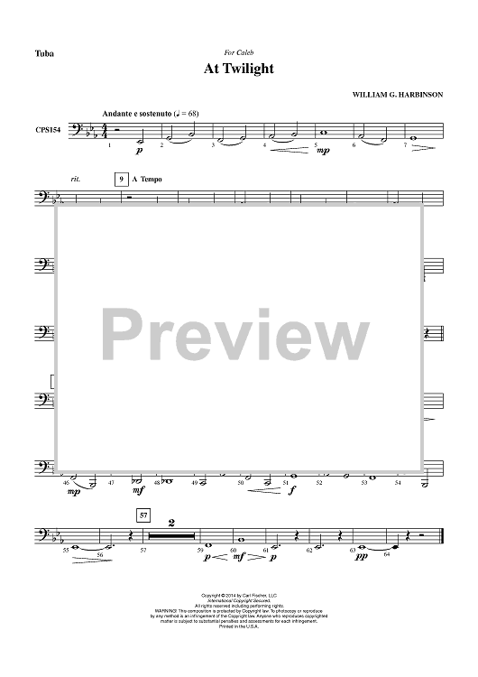 "At Twilight - Tuba" Sheet Music by William G. Harbinson