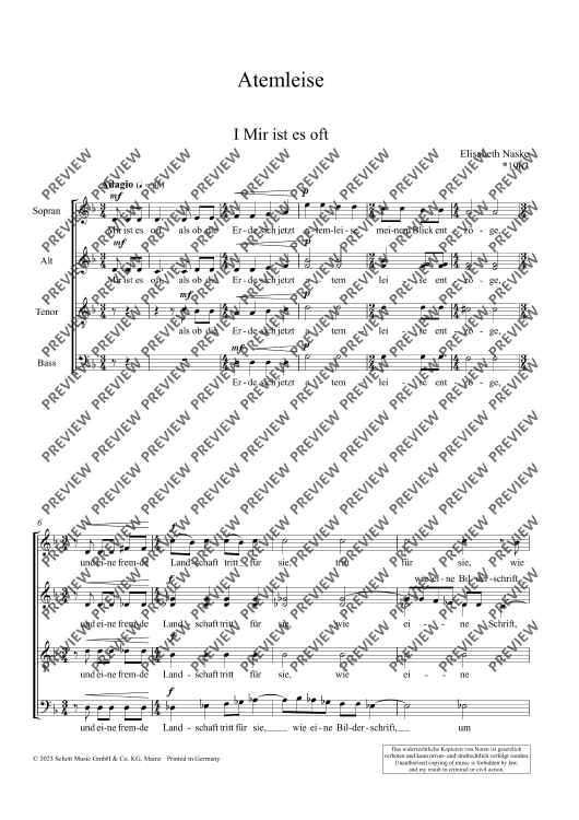Digital Sheet Music for Atemleise - Choral Score by Elisabeth Naske scored for Choir Satb A Capella; id:500231
