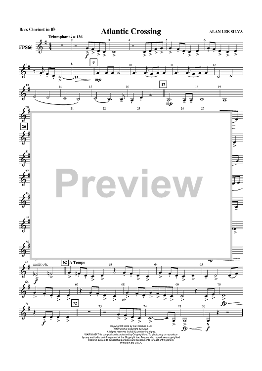 Digital Sheet Music for Atlantic Crossing - Bass Clarinet in B-flat by Alan Lee Silva scored for Concert Band; id:409117