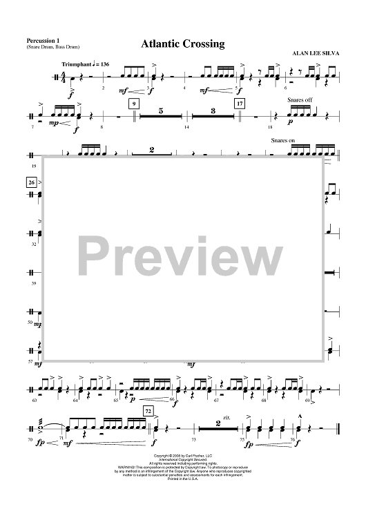 "Atlantic Crossing - Percussion 1" Sheet Music by Alan Lee Silva