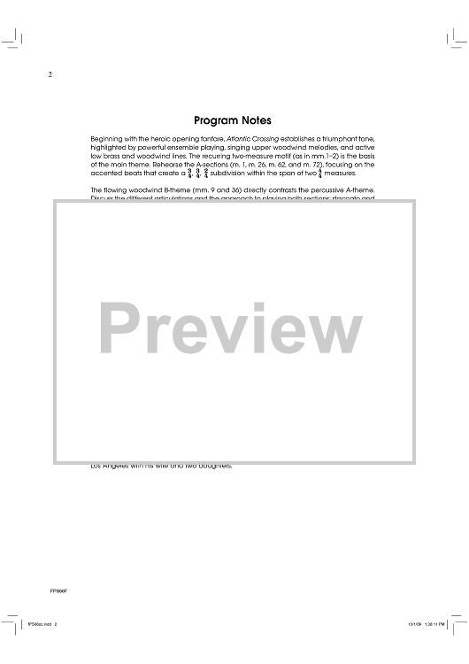 "Atlantic Crossing - Score" Sheet Music by Alan Lee Silva