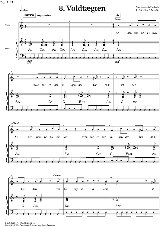 Digital Sheet Music for Atlantis part 1 ( 1 -10) by , Thomas Hoeg, Peter Spies, Sune Svanekier scored for Voice/Piano; id:344162