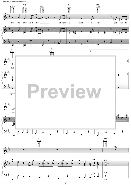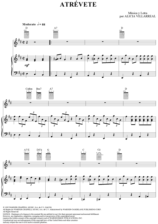 Digital Sheet Music for Atrévete by Grupo Limite, Alicia Villarreal scored for Piano/Vocal/Chords; id:220662