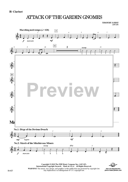 Digital Sheet Music for Attack of the Garden Gnomes - Bb Clarinet by Timothy Loest scored for Beginning Band; id:415072