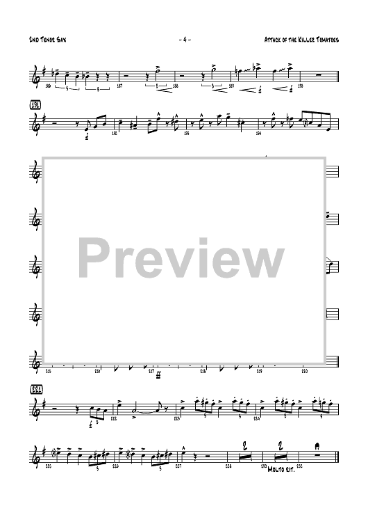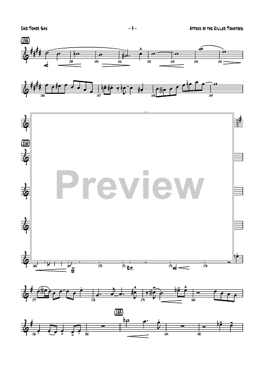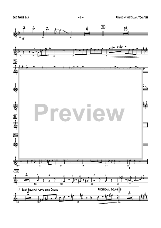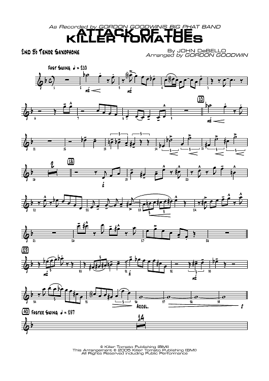 Digital Sheet Music for Attack of the Killer Tomatoes - B-flat Tenor Saxophone 2 by Gordon Goodwin, Gordon Goodwin's Big Phat Band, John DeBello scored for Jazz Ensemble; id:356123