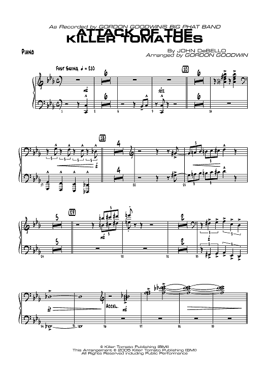"Attack of the Killer Tomatoes - Piano" Sheet Music by Gordon Goodwin's Big Phat Band