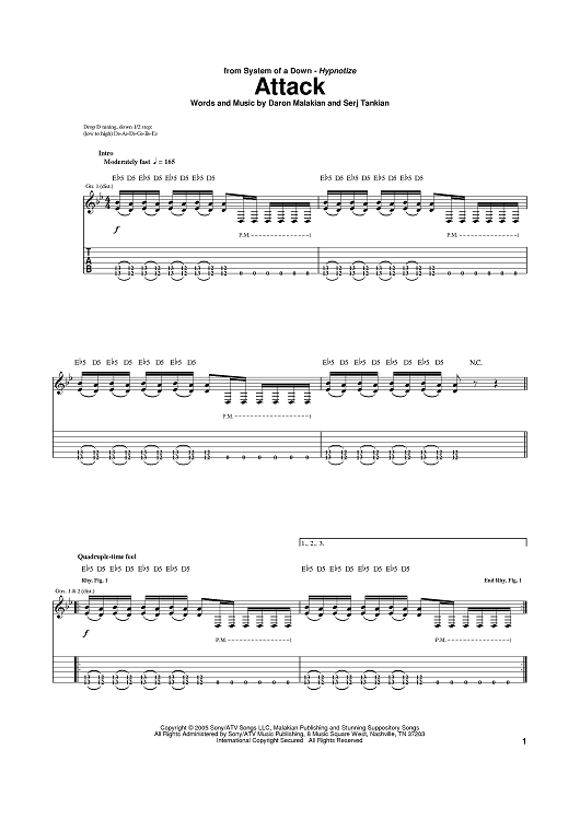 Digital Sheet Music for Attack by Daron Malakian, System Of A Down, Serj Tankian scored for Guitar Tab; id:389425